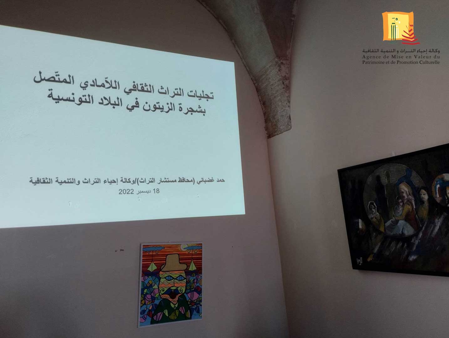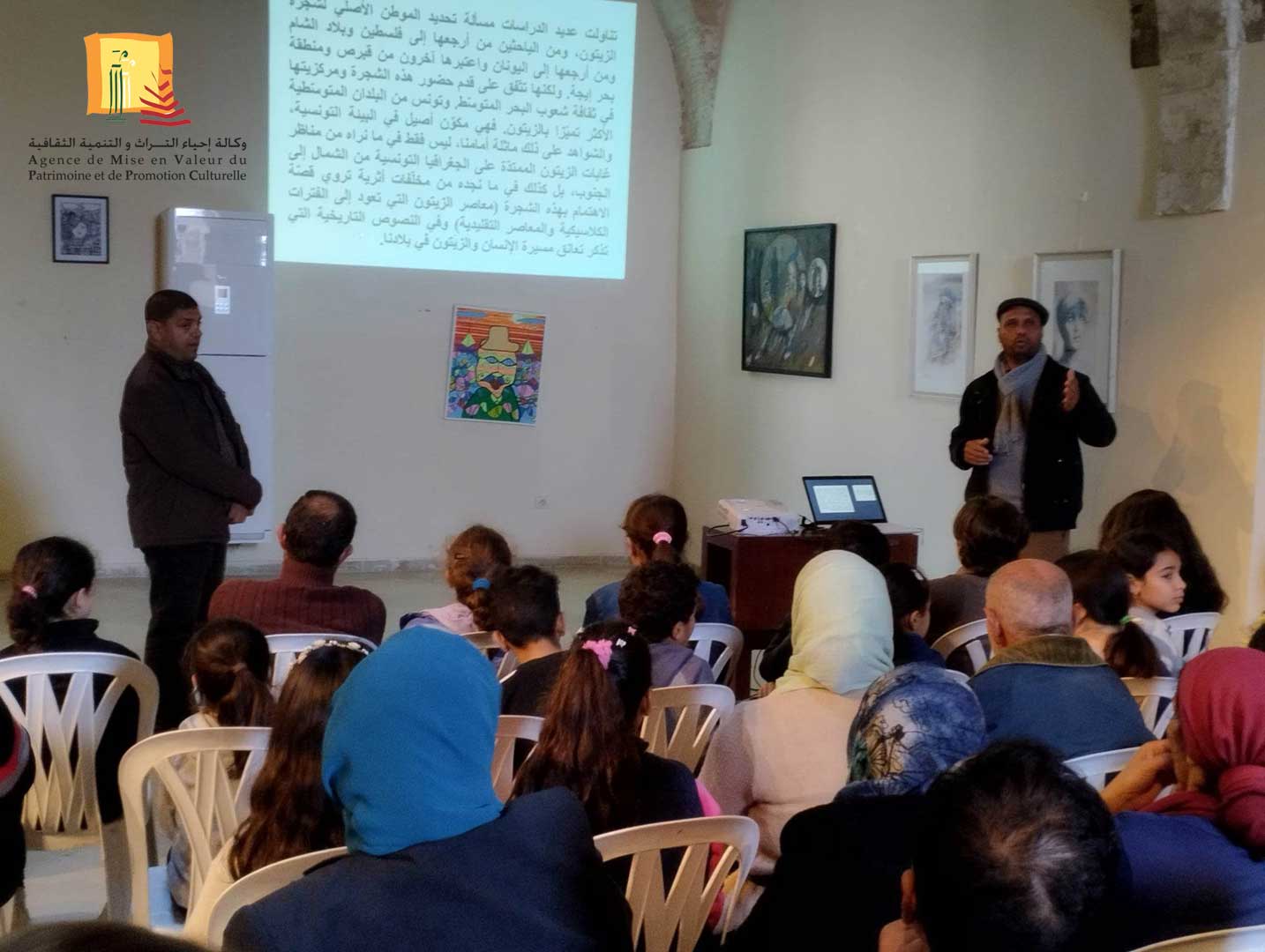 وأُفتتحت التظاهرة بمحاضرة علميّة بعنوان تجليات التراث الثقافي غير المادي المتصل بشجرة الزيتون في البلاد التونسية قدّمها السيد حمد الغضباني محافظ مستشار للتراث بوكالة إحياء التراث والتنمية الثقافية، وسلّط الضوء فيها على المهارات والمعارف والممارسات المتعلقة بالزيتونة بطريقة مبسطة استفاد منها الأطفال الحاضرون، وتضمن برنامج التظاهرة أيصا عرضا للشريط الوثائقي "الزيتونة في التراث التونسي".