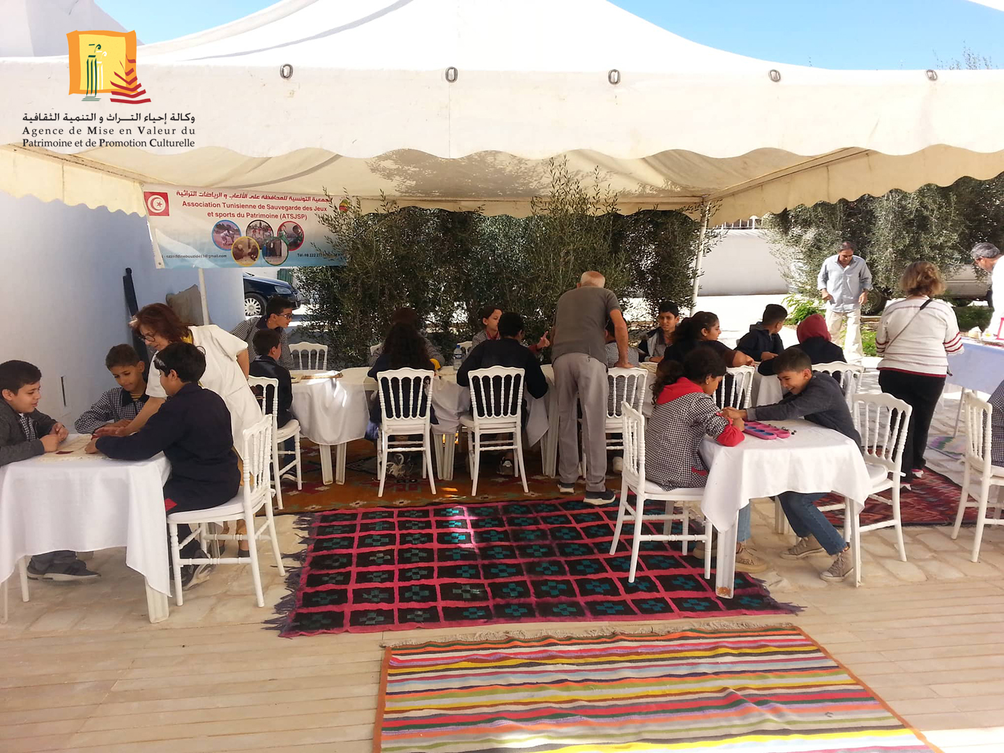 وعرفت ورشة الألعاب التراثية مشاركة من جميع الأعمار وكانت فرصة لاكتشاف عدد من الألعاب التراثية والتعرف على قواعد اللعب في ورشة جمعت بين الترفيه واكتساب المعارف والمهارات ومثلت مثالاا لتناقل التراث الثقافي غير المادي عبر الأجيال. وأشرف على هذه الورشة السيد عز الدين بوزيد رئيس الجمعية التونسية للمحافظة على الألعاب والرياضات التراثية.