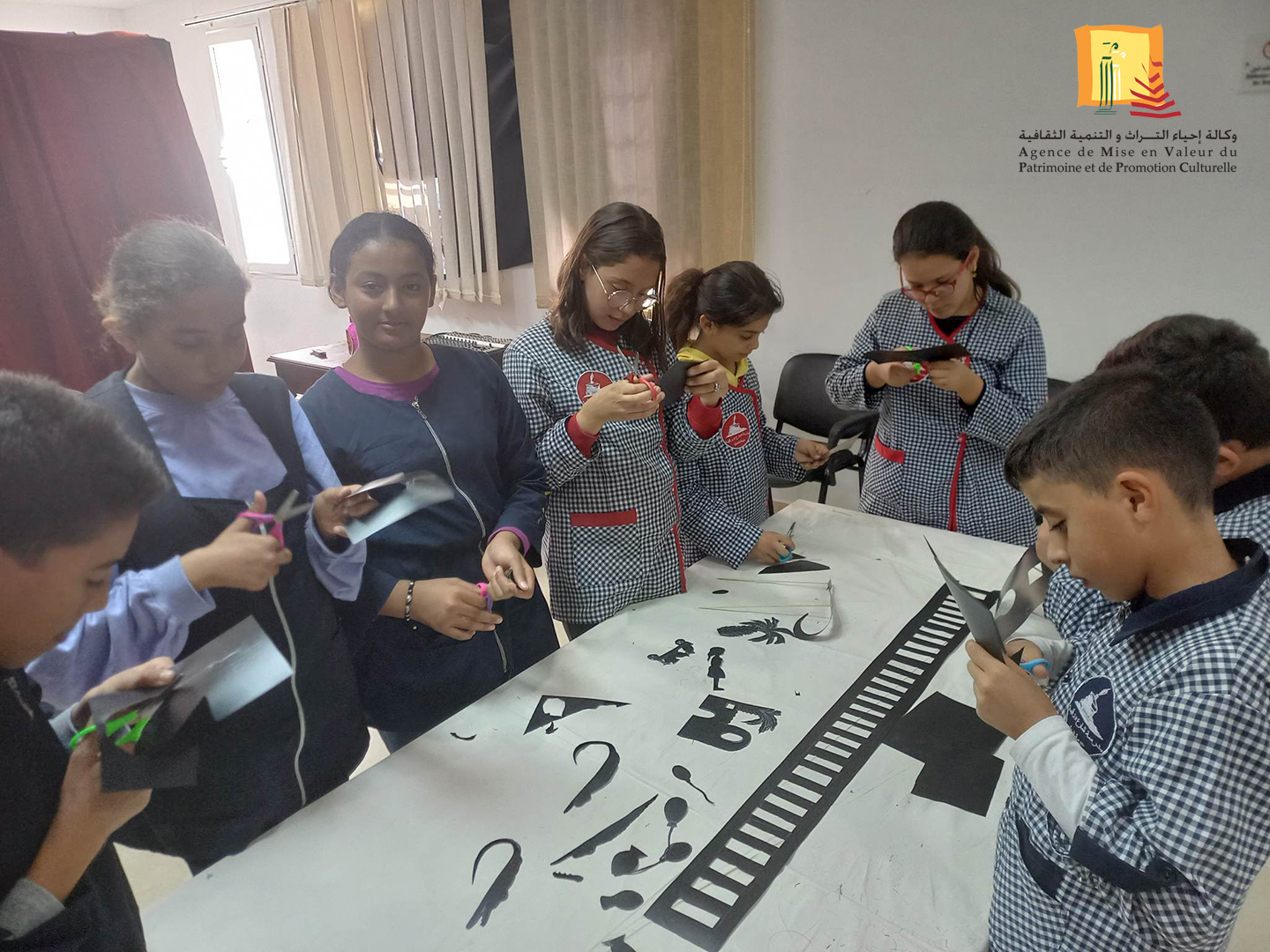 وتعرّف الأطفال المشاركون في ورشة صناعة عرائس خيال الظل على مفهوم مسرح خيال لظّل والتقنيات المستعملة لتحريك العرائس والمواد المستعملة لإنجاز مشهد مسرحي بإشراف من عرائسي المركز الوطني لفن العرائس.