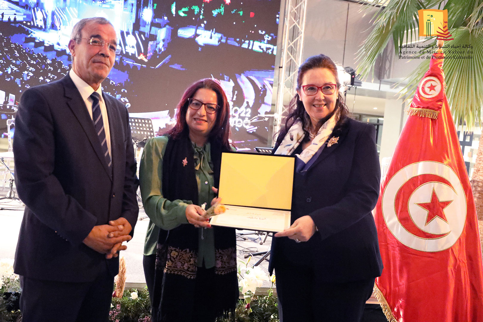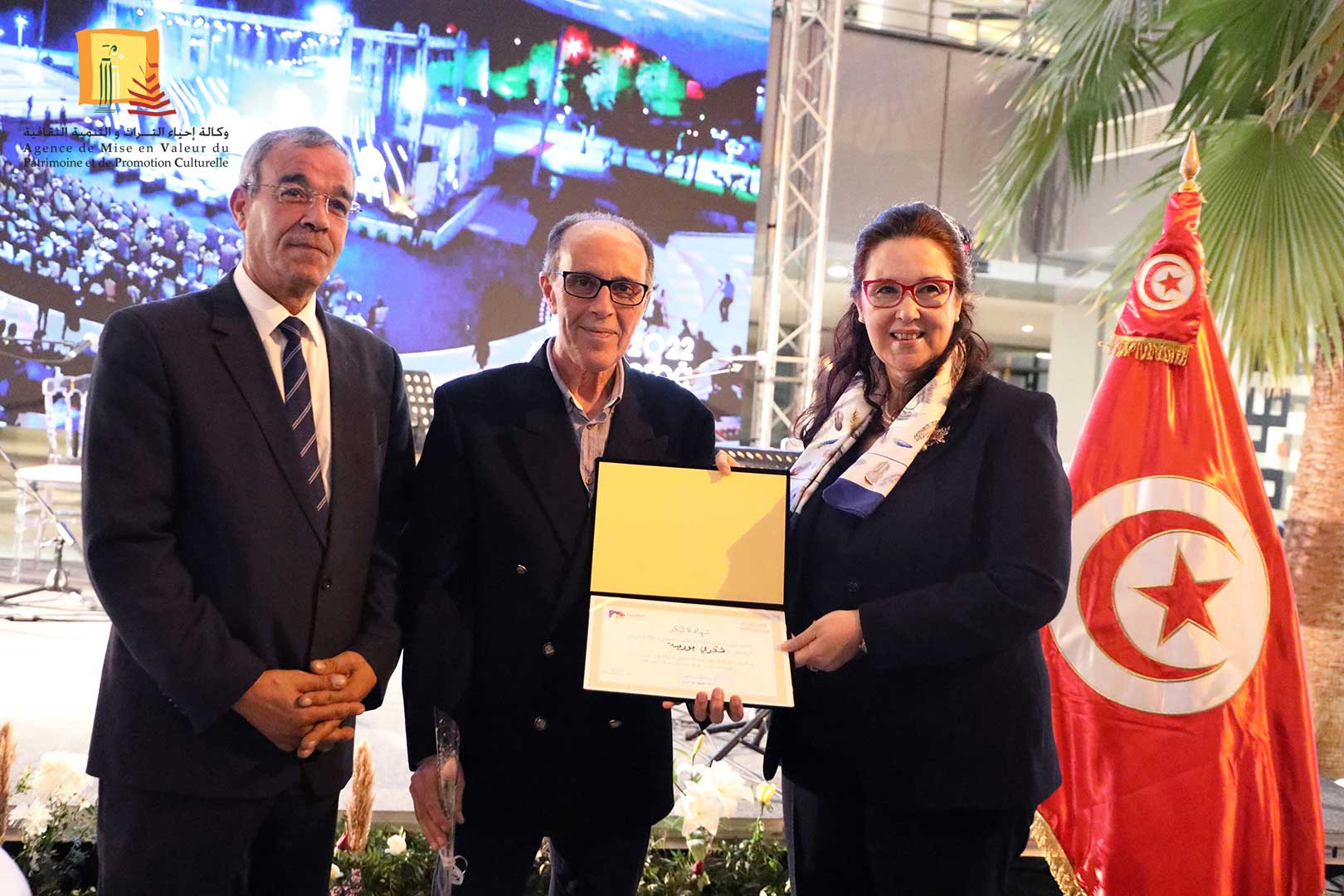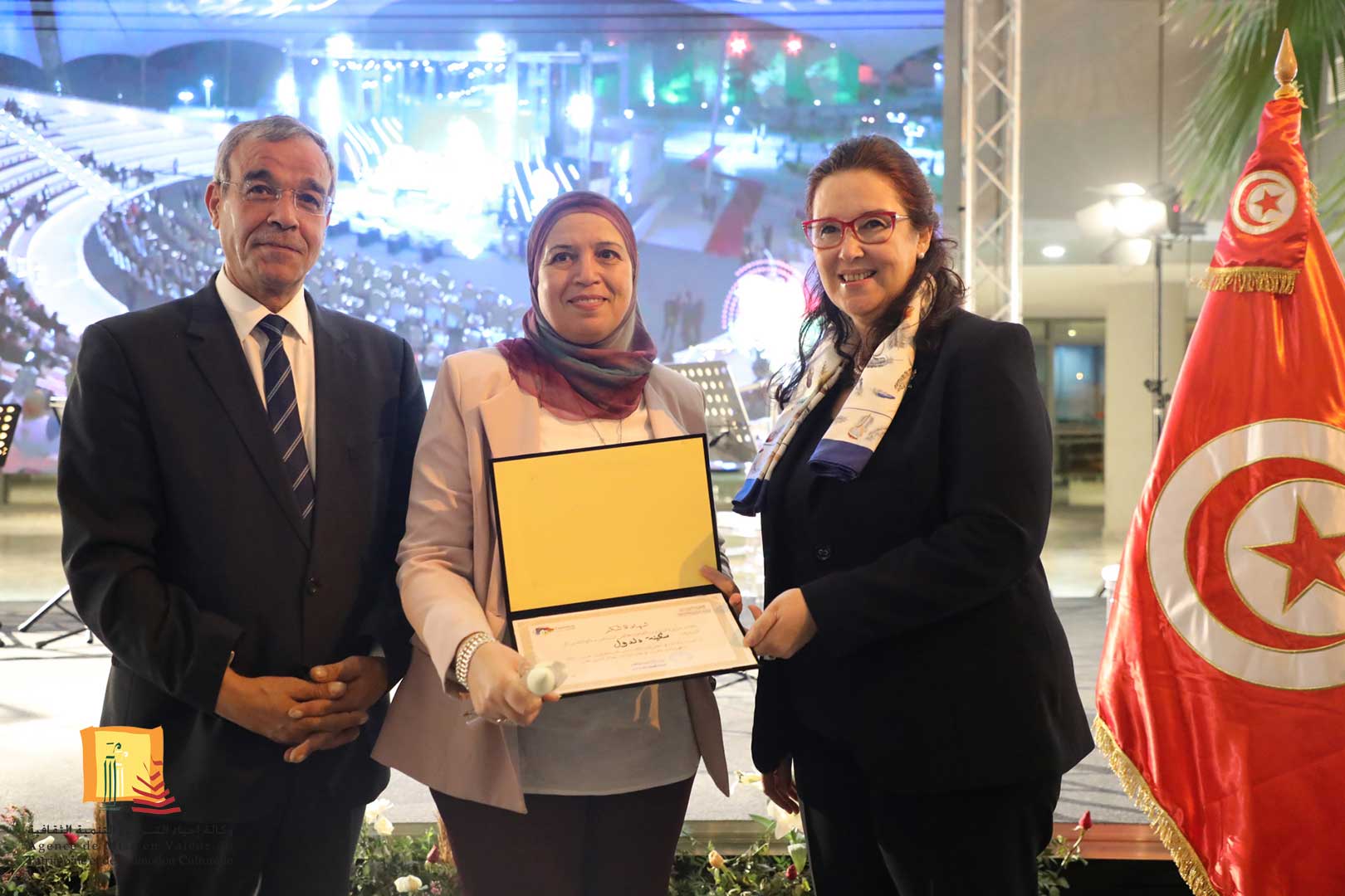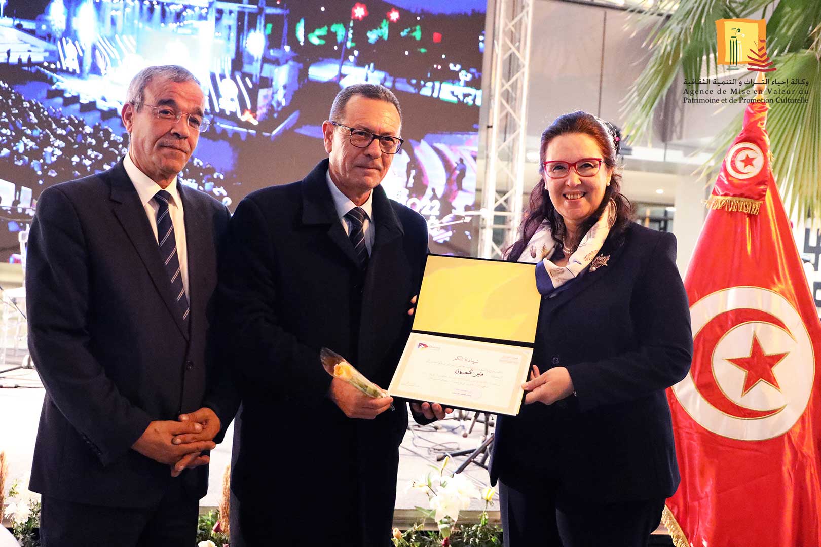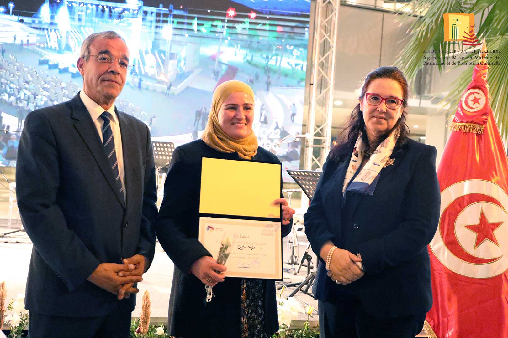 كرّمت وزيرة الشّؤون الثقافيّة، الدكتورة حياة قطاط القرمازي ،اليوم الجمعة 16 ديسمبر 2022 ثلّة من إطارات وأعوان وكالة إحياء التراث والتنمية الثقافيّة المشاركين في إنجاح تنظيم القمة الثامنة عشر للفرنكوفونية وذلك في حفل احتضنته مدينة الثقافة الشاذلي القليبي بحضور العميد المنصف ساسي، المنسق العام للجنة الوطنية لتنظيم القمة الفرنكوفونية.