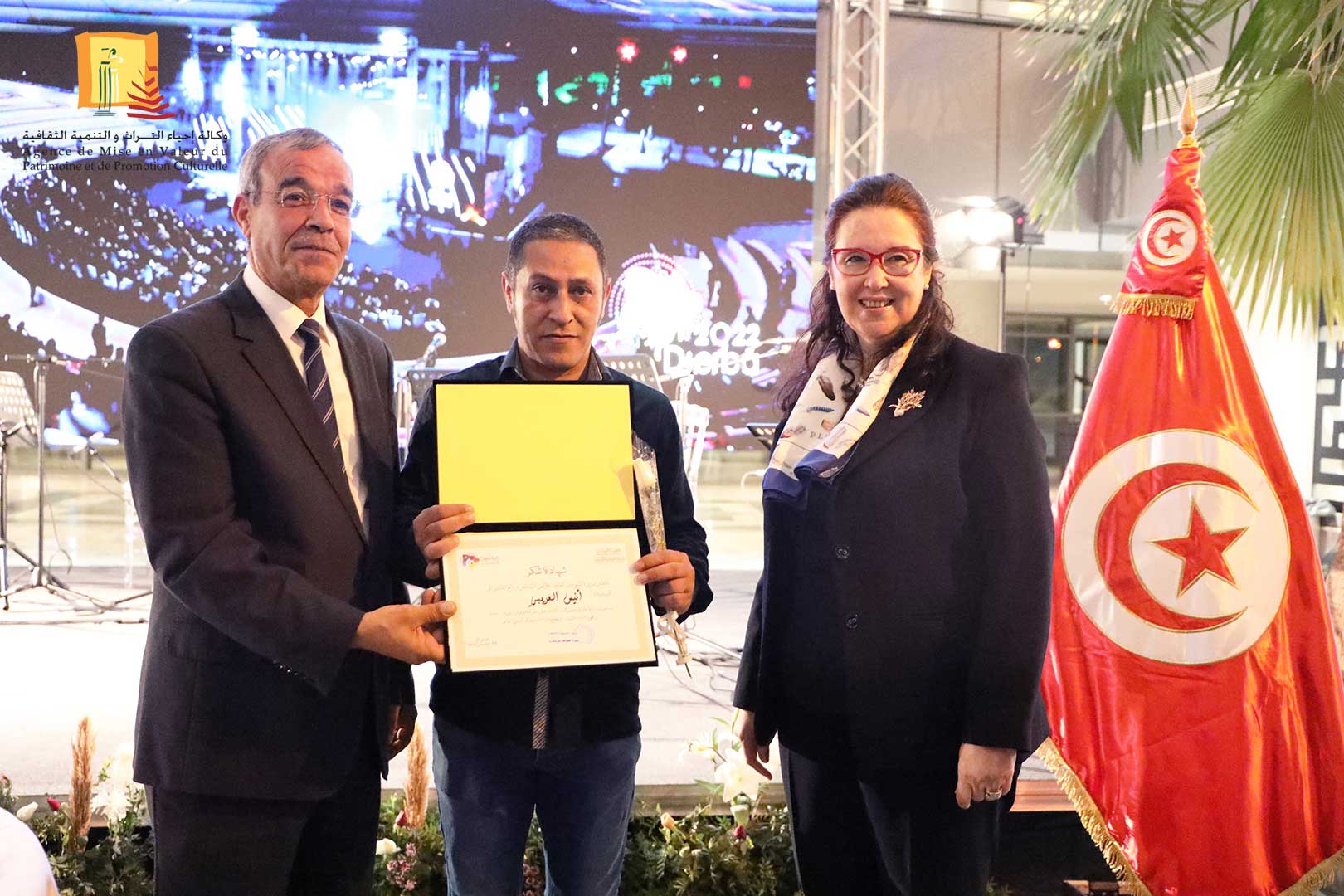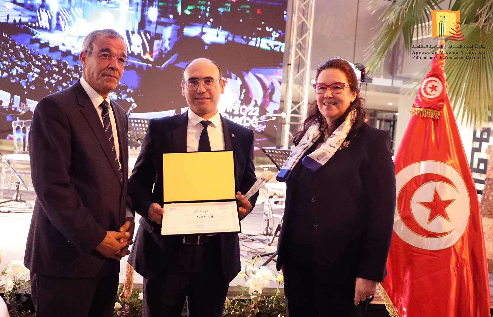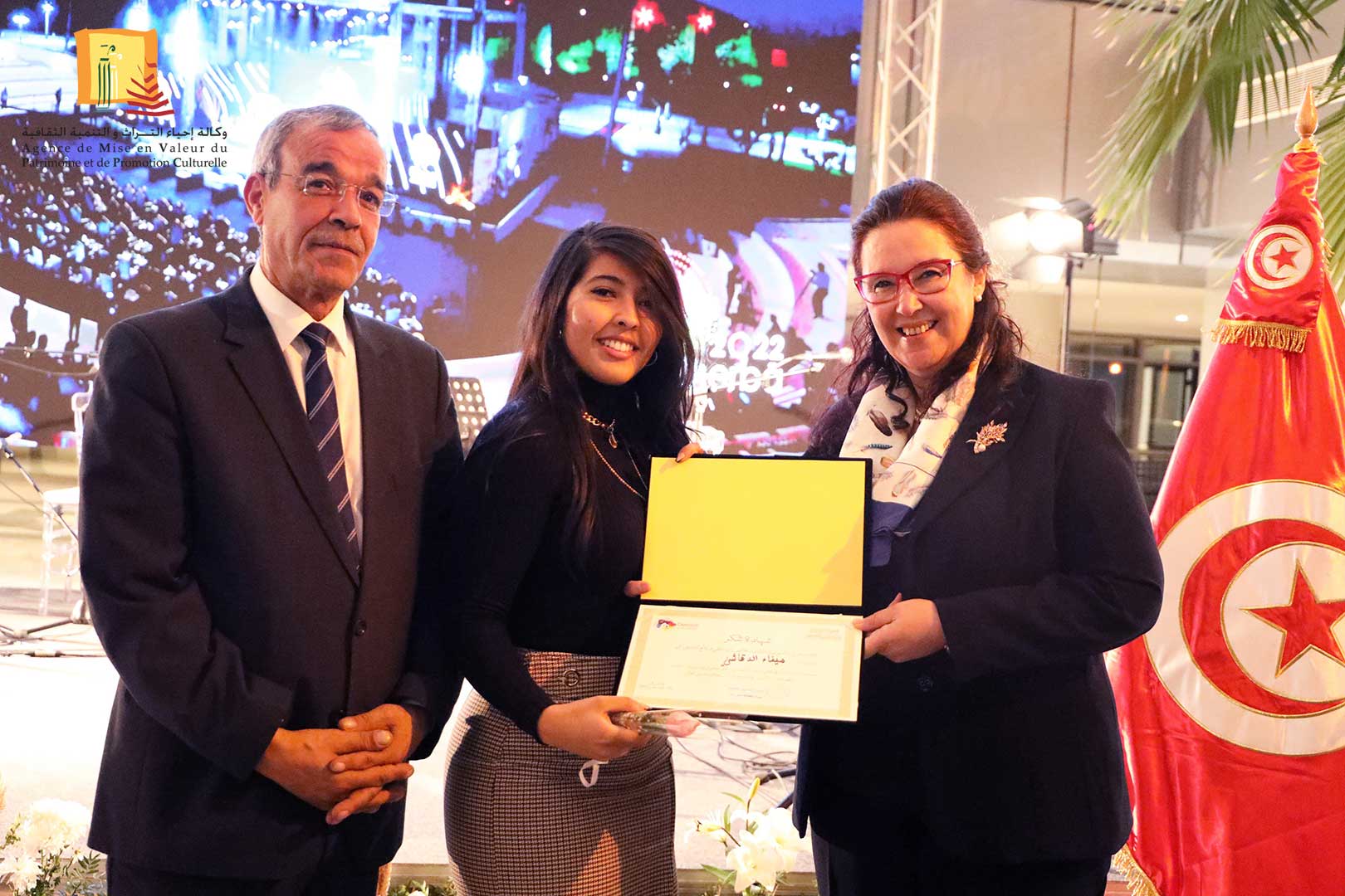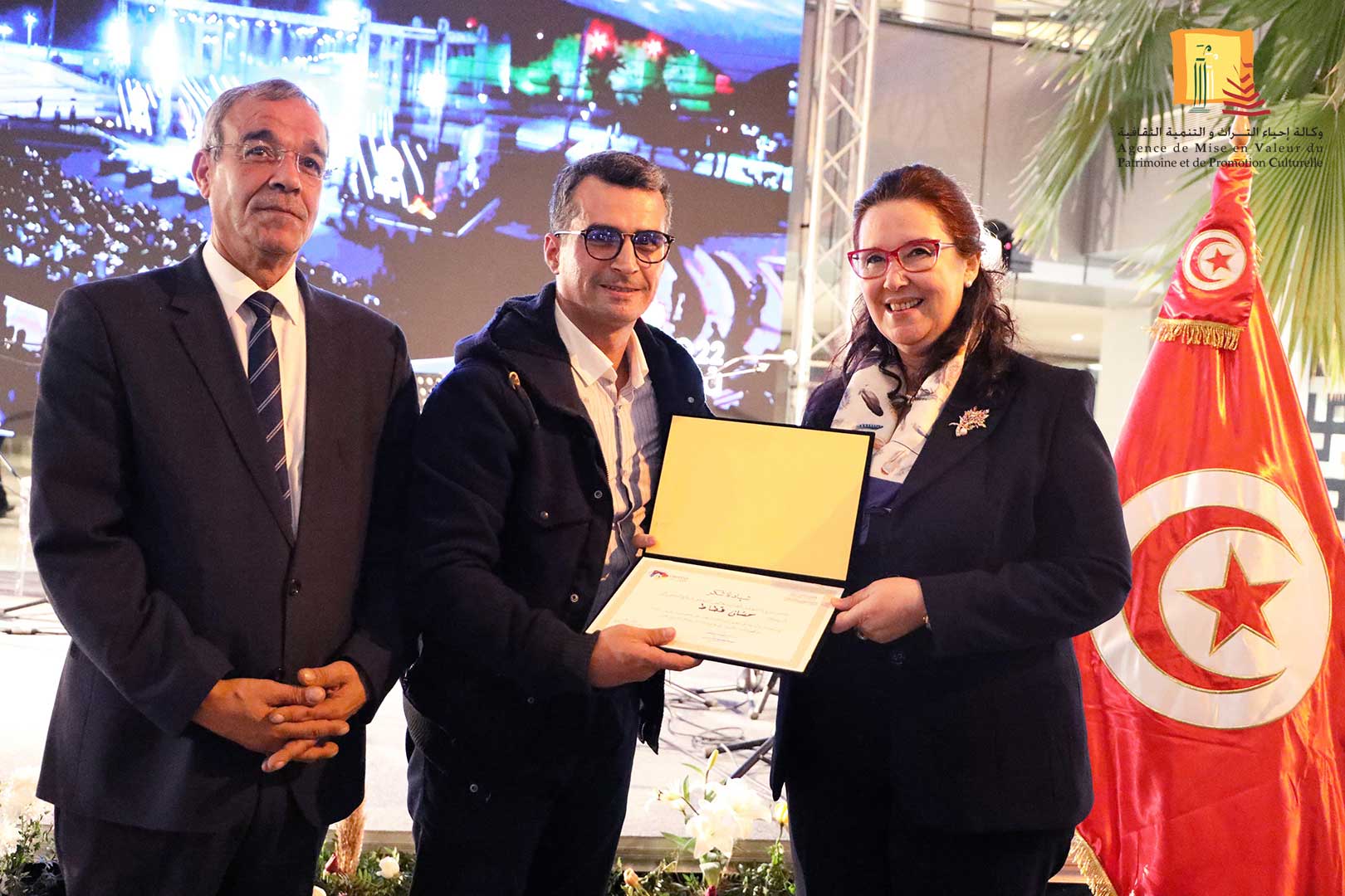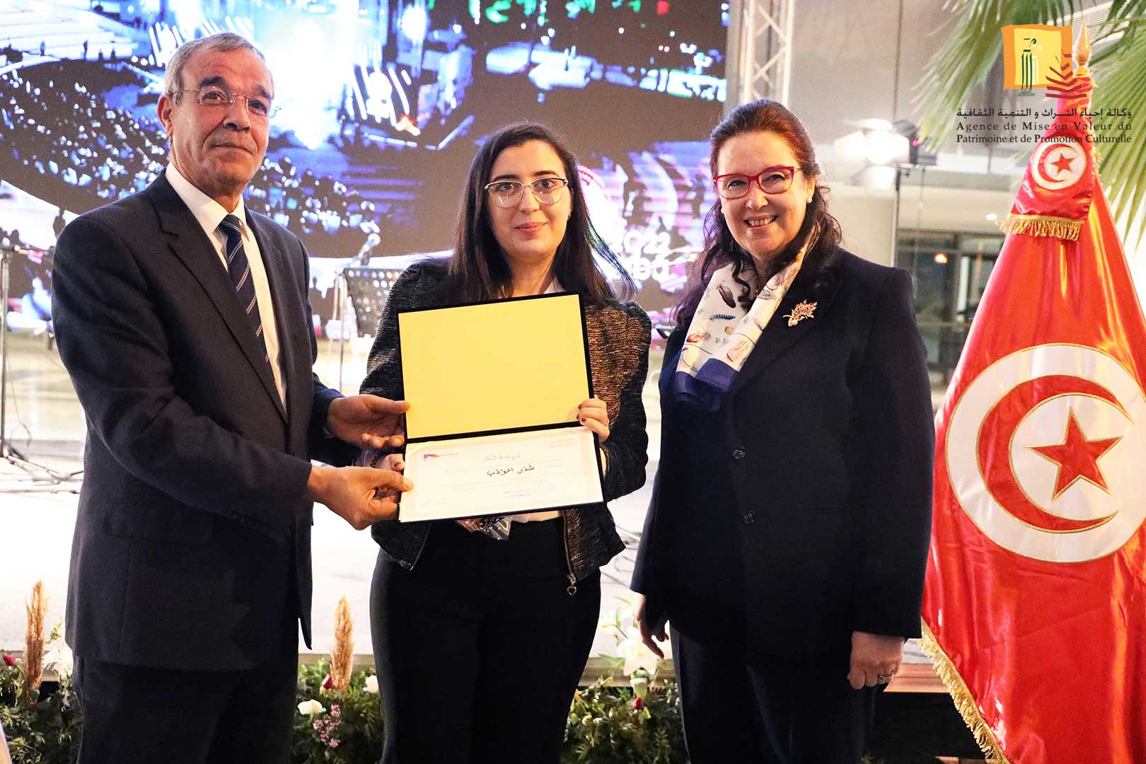 كرّمت وزيرة الشّؤون الثقافيّة، الدكتورة حياة قطاط القرمازي ،اليوم الجمعة 16 ديسمبر 2022 ثلّة من إطارات وأعوان وكالة إحياء التراث والتنمية الثقافيّة المشاركين في إنجاح تنظيم القمة الثامنة عشر للفرنكوفونية وذلك في حفل احتضنته مدينة الثقافة الشاذلي القليبي بحضور العميد المنصف ساسي، المنسق العام للجنة الوطنية لتنظيم القمة الفرنكوفونية.