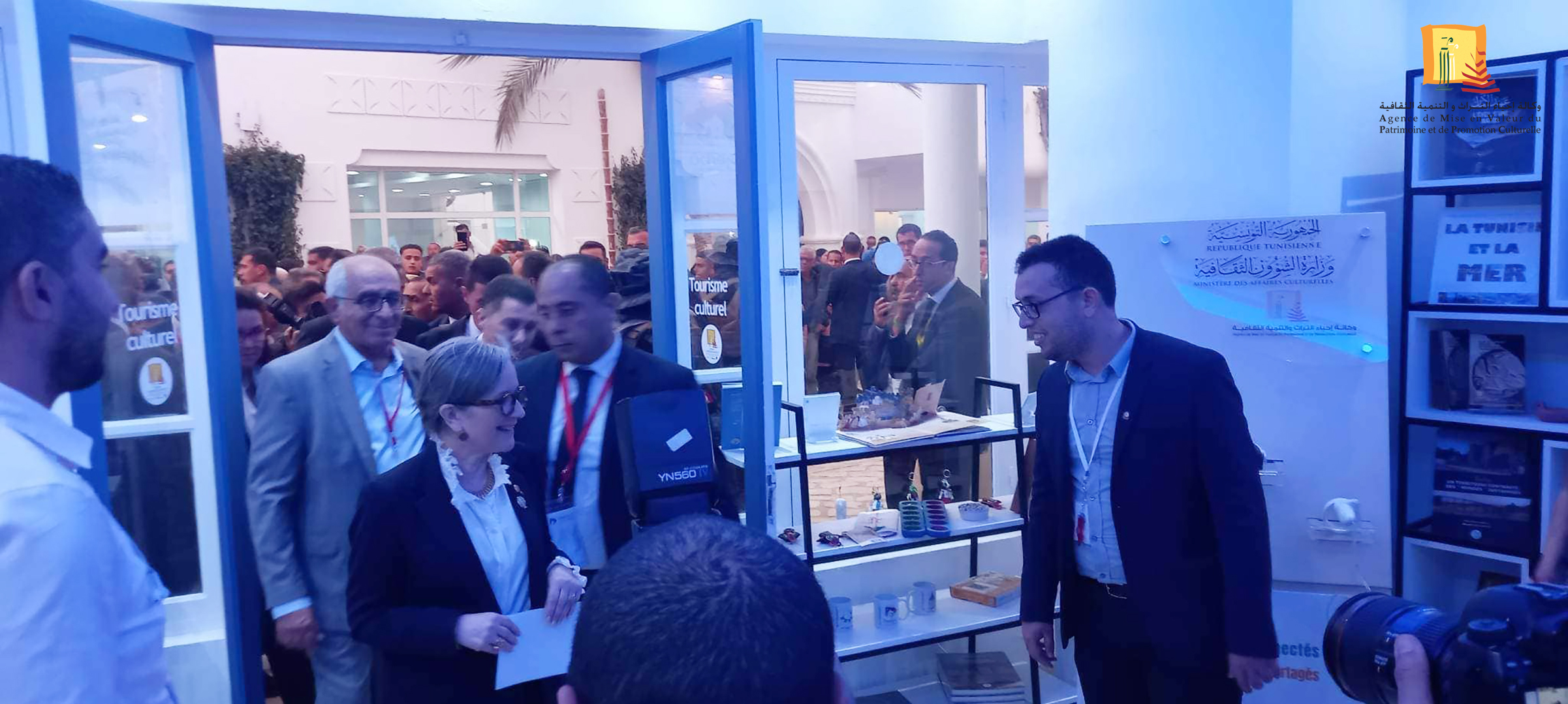 وتعرفت السيدة رئيسة الحكومة والوفد الوزاري المرافق لها على مجهودات وكالة إحياء التراث والتنمية الثقافية لتثمين التراث الثقافي الوطني والتعريف به وتعزيز صورة تونس الثقافية والحضارية في الداخل والخارج، كما اطلعت على المنتوجات الثقافيّة المستوحاة من التراث وعلى الكتب الجديدة والإصدارات المعروضة بفضاء وكالة إحياء التراث والتنمية الثقافية بالقرية التّونسية للفرنكوفونية.