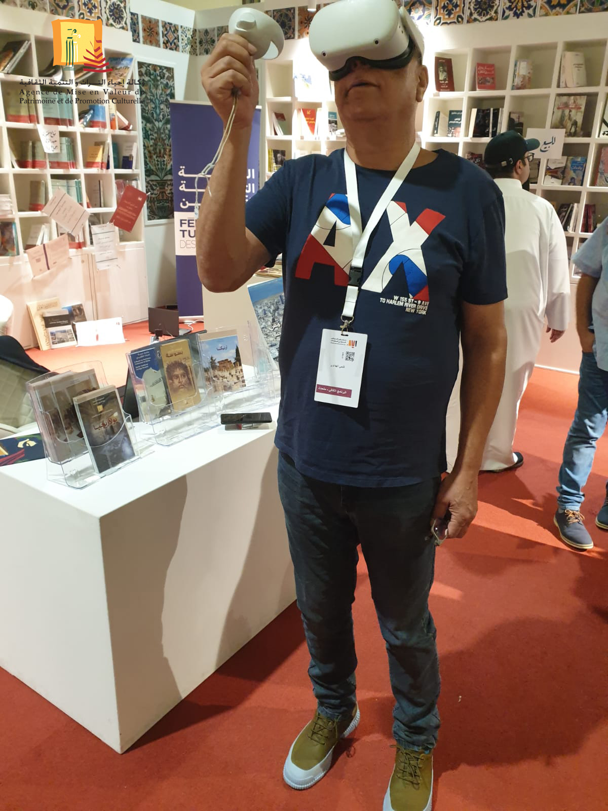 وزار الفنان التونسي فتحي الهداوي المشارك في المعرض كمتحدث، فضاء وكالة إحياء التراث والتنمية الثقافية وأشاد بالتجارب الافتراضية التي تشارك بها المؤسسة في هذا المعرض وتوجه الوكالة نحو اعتماد التكنولوجيا الحديثة لمزيد التعريف بالمخزون الأثري لبلادنا.
