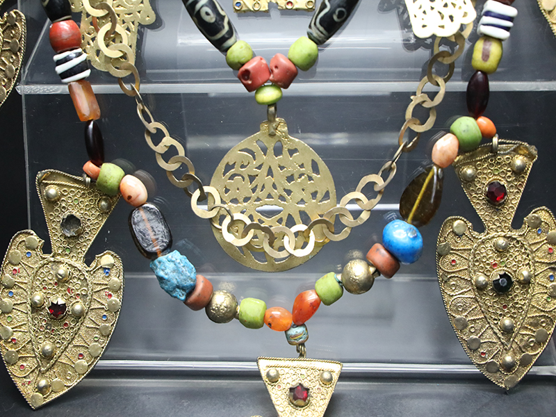 أما العرض الاثنوغرافي الذي يمثل الجزء الأكبر من المتحف فقد خصص للتعريف بالفنون و التقاليد الشعبية إذ يضم احد أقسامه نماذج من الفخار العادي الذي كان يستعمل للطبخ و حفظ الماء و الأغذية ويقدم قسم أخر منه مختلف الملابس والمصوغ الذي تلبسه النساء وهي مصنوعة إما من الفضة أو الذهب ويدخل في تأليفها الدر والمرجان والياقوت، أما الملابس فتطرز بالخيوط الفضية المطلية بالذهب. و يتمثل اللباس اليومي للنسوة أساسا في قطعتين من القماش سوداوين أو حمراوين (خلالة) تثبتان على مستوى الكتفين بخلال وتشدان في مستوى الخصر بواسطة حزام من خيوط الصوف يُعرف بالشّملة. ويغطى الرأس منديل أو قفية مطرزة بالفضة المطلية بالذهب. ويتمثل الحذاء في بَلْغة مطرّزة.