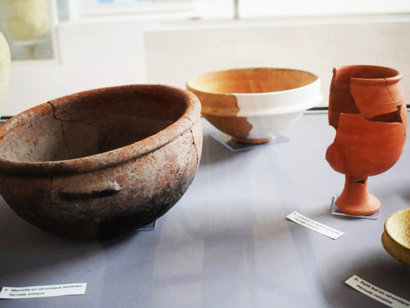 ومن الشواهد التي تهم الحياة اليومية عرضت أشكال وأنواع مختلفة من الفخار والقطع النقدية تعود إلى حقب مختلفة كما يوجد صفيحات من مادة الرصاص نقشت عليها كتابة ورموز سحرية تستعملها فرق سباق العربات في ما بينها عثر عليها بالمركض الروماني بقرطاج.