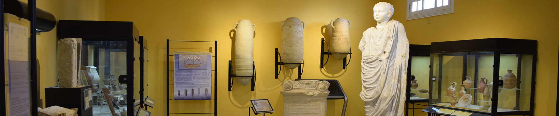 أماالعصرالروماني، فهو ممثل في المتحف من خلال لوحات الفسيفساء ومجموعة من النقائش الحجرية المتضمنة لكتابات باللاتينية، وبعض المنحوتات الرخامية ، التي تُعدّ بحق روائع فنية (هرقل ، أريادن ، إيسكولابيوس ، ساتير) وقطع من الخزف والتماثيل الصغيرة المصنوعة من الفخار والتي تعكس حضورا رومانيا قويا بالمدينة.