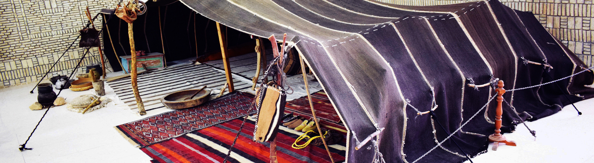 لا يمكن لمتحف يمثل البدو الرحل أن لا يحتوي على مسكنهم المتنقل، الخيمة، لذلك انتصب نموذج منها وسط قاعة العرض وكأنها في بيئتها الطبيعية وبداخلها وأمامها أواني وأدوات وأثاث مختلف الاستعمالات فمنها ما يتعلق بالمرأة كالبرمة ومنها ما يتصل بحياة الرجل كمخلاة.