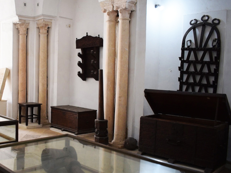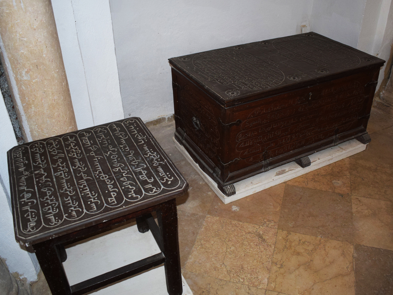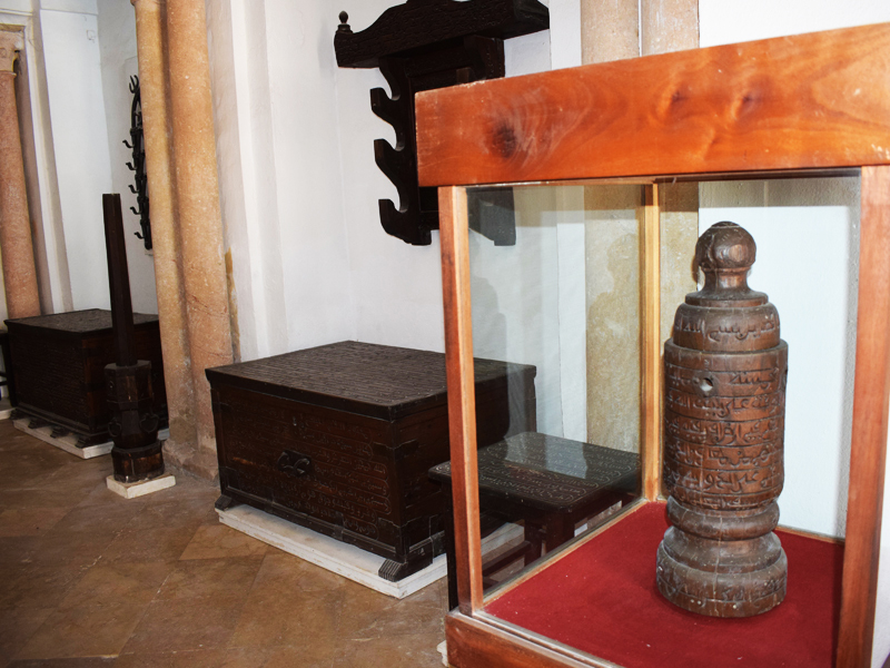 ولعل هذه القطع، ذات المقاسات الضخمة، وغير الوظيفية تعكس هوس العظمة الذي اشتهرت به هذه الشخصية المتفردة. وهي تشتمل على سيوف من الحديد المطاوع محفوظة في أغماد من الخشب الصلد ورفوف وغليون ضخم ومراسي عملاقة وصناديق لحفظ الأمتعة... جُلبت من القاعدة البحرية بغار الملح وتبرع بها أحمد باي للزاوية. ويعود مجمل هذه القطع إلى النصف الأول من القرن الثالث عشر الهـجري / القرن التاسع عشر الميلادي. ويحمل بعضها نقوشًا محفورة بالخط المغاربي. وتشمل نصوص هذه النقوش آيات قرآنية وبعض النبوءات وجوانب من حياة سيدي عمر عبادة ومواقفه من مسائل وأحداث معينة جدّت في زمنه. وتُشكّل هذه القطع مدوّنة لصنعة الحدادة والنجارة بالقيروان في القرن الثالث عشر الهجري / التاسع عشر ميلادي.