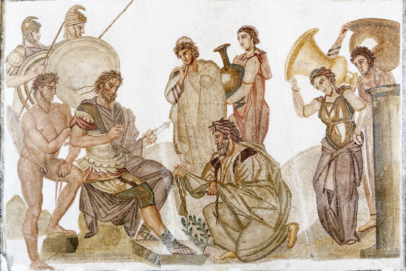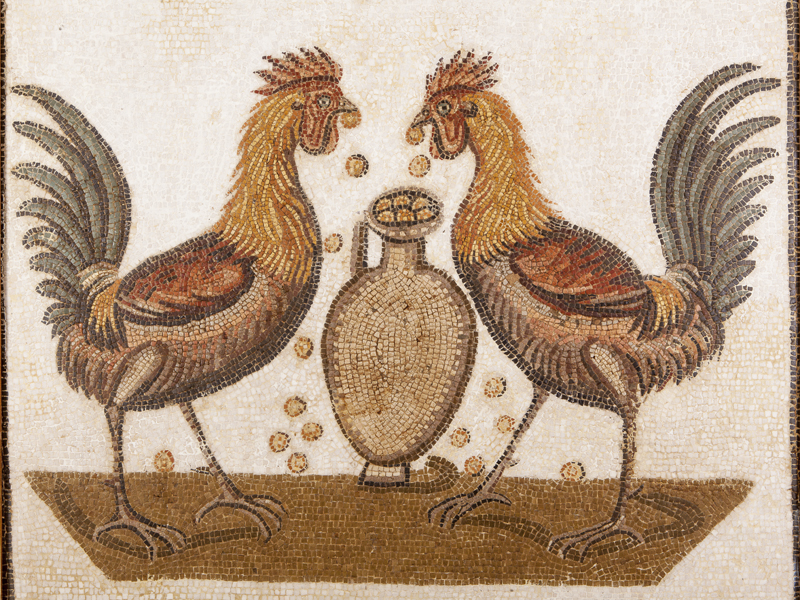 ومن بين القطع اللافتة للانتباه، مجموعة من الفسيفساء البديعة المستجلبة من البيت الفخم المعروف ببيت الحوريات (نمفاروم دوموس) بنيابوليس: وتمثل إحداها ديكين متقابلان تتوسطهما جرّة مليئة بالنقود الذهبية. ولا ريب في أن هذه الفسيفساء توحي بثراء رب البيت ويسره، في حين تسرد الفسيفسات الأخرى فصولا من الأساطير اليونانية (سفارة كرزاس، كاهن الإله أبولو لدى الملك اليوناني أغمامنون، واستحمام الحوريات في منبع هيبوكران، وأسطورة فيليكتيتس الذي جُرح وتُرك وحيدا في جزيرة لمنوس والى جانبه الأقواس والجعبة التي أورثها إياه هيرقليس، وأسطورة بوسيدون بصدد إنقاذ الحورية ميمون). وتعكس هذه المشاهد المصورة على فسيفساء تعود الى القرن الرابع قبل الميلاد والتي تنخرط في السياق الأثيني السائد خلال القرن الخامس قبل الميلاد، الحس المرهف وسعة الثقافة الكلاسيكية التي كان يتمتع بها رب البيت الذي يرجح أنه عاش في أواخر العصر الروماني.