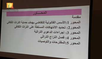 ثم تواصلت فعاليات الندوة بورشة تكوينيّة بعنوان"التّقاضي الثقافي: الممتلكات الثقافيّة نموذجا تحت إشراف السيّدة نجيبة الزاير، قاضية ومختصّة في قانون التّراث، حيث طغى على الأجواء طابعا ديناميكيّا وحركيّة كبيرة من .خلال التًفاعل الهامّ والمتنوّع بين المشاركين والحاضرين في الورشة.