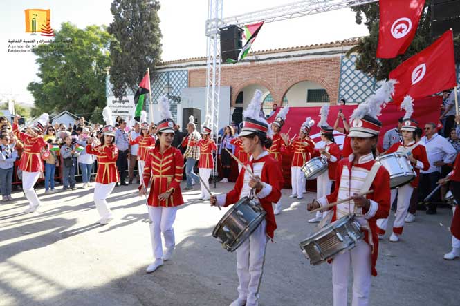 وتضمنت فقرات اليوم الختامي لمهرجان الرمان بتستور تحية للعلم التونسي والفلسطيني أمنتها منظمة الكشافة التونسية وماجورات قصر هلال.