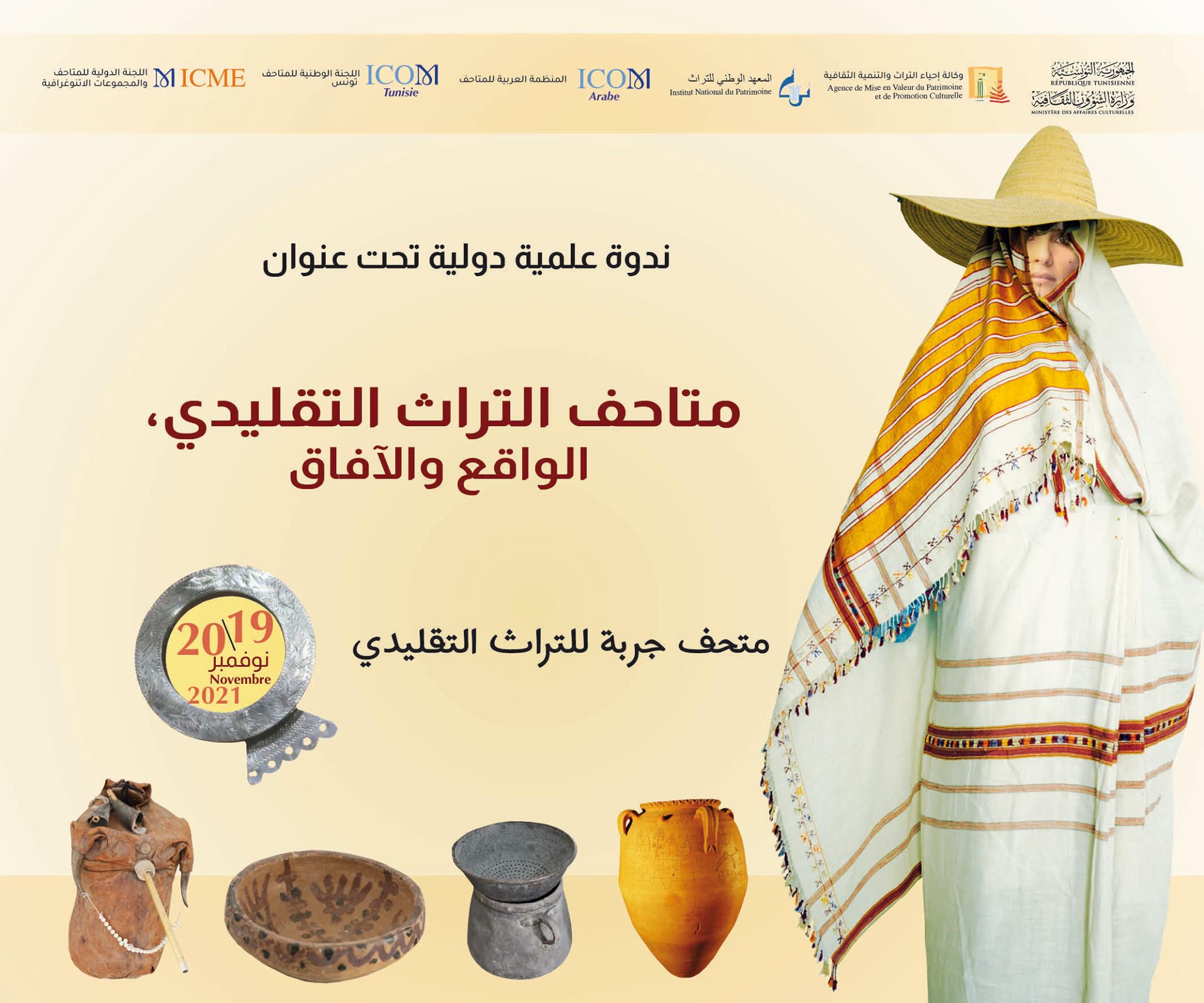 هذا وينتظر أن يختتم الملتقى العلمي الذي تنظمه وكالة إحياء التراث والتنمية الثّقافية تحت إشراف وزيرة الشؤون الثقافية بالتعاون مع المعهد الوطني للتراث واللجنة الدولية للمتاحف والمجموعات الإتنوغرافية والمنظمة العربية للمتاحف واللجنة الوطنية للمتاحف تونس، يوم غد السبت