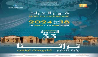 تحت إشراف وزارة الشؤون الثقافية، وفي إطار الدورة 33 لشهر التراث والتي وضعت تحت شعار "تراثنا... رؤية تتطوّر ...تشريعات تواكب"، تنظّم وكالة إحياء التراث والتنمية الثقافية جملة من التّظاهرات تهدف من خلالها إلى مواكبة آخر التطلعات والأهداف الإستراتيجية على المستوين الوطني والدّولي لمزيد تحسين مردوديّة قطاع التراث بين مختلف القطاعات ليصبح قطاعا واعدا وحيويا خالقا للثروة.