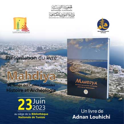 في إطار التعريف بإصدارات الحديثة وكتبها القيّمة التي تُعنى بالتراث، تنظّم وكالة إحياء التّراث والتنمية الثقافية ودار الكتب الوطنية حفل تقديم كتاب "المهدية زمن الخلفاء الفاطميين تاريخ وآثار" لمؤلفه عدنان الوحيشي أستاذ بحوث بالمعهد الوطني للتراث وذلك يوم الجمعة 23 جوان 2023.