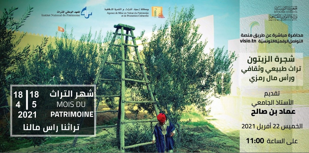 في إطار فعاليات شهر التّراث في دورته الثّلاثين الممتد من 18 أفريل إلى 18 ماي تحت شعار "تراثنا... راس مالنا"، قدّم الأستاذ الجامعي ورئيس جمعية تازامورت عماد بن صالح، محاضرة بعنوان شجرة الزيتون: تراث طبيعي وثقافي ورأس مال رمزي.