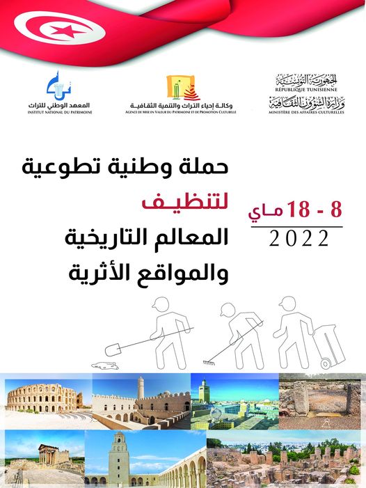 في إطار مزيد الإحاطة بمواقعنا الأثرية ومعالمنا التاريخية، وإضافة إلى حملات التعهّد والصيانة السنوية التي تقوم بها الوكالة بمجهوداتها الذاتية، تشارك وكالة إحياء التّراث والتنمية الثقافيّة تحت إشراف وزارة الشؤون الثقافية في القيام بحملة نظافة تشمل كافّة المواقع والمعالم المفتوحة التي تشرف الوكالة على إدارتها من 8 إلى 18 ماي 2022.