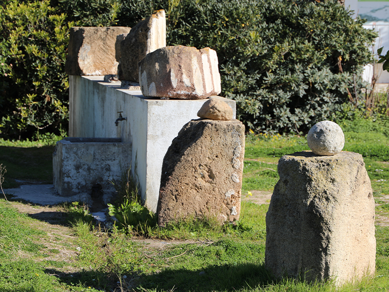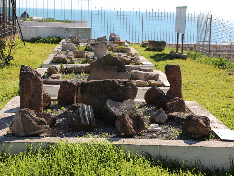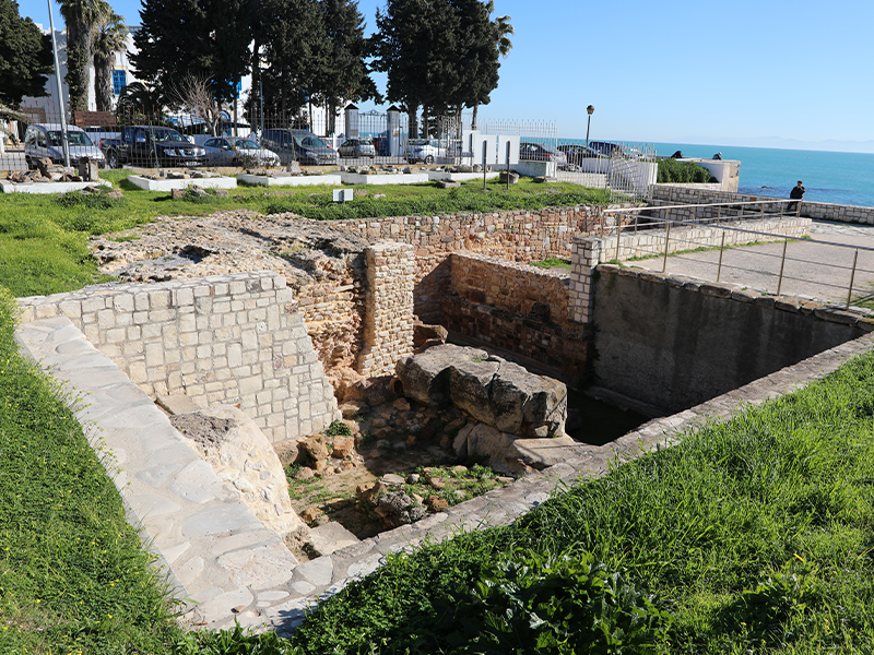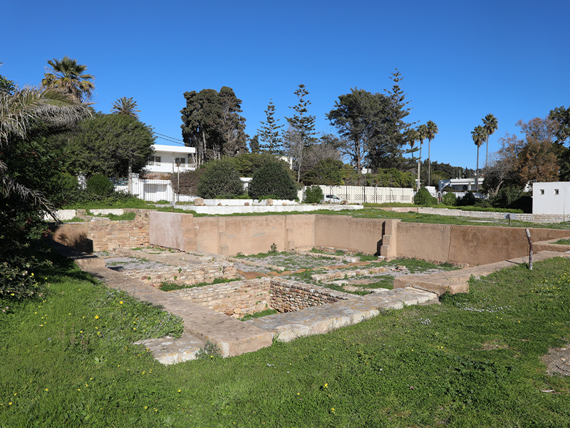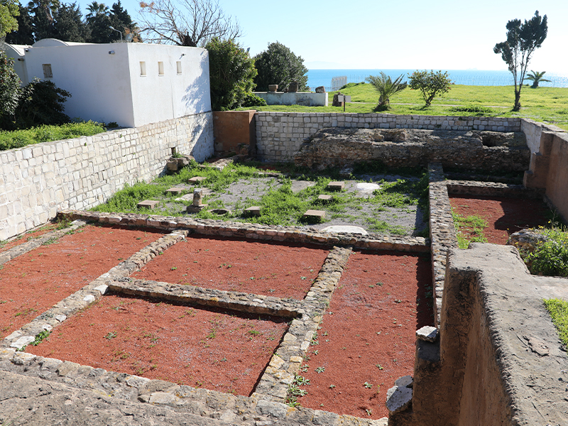 والحي عبارة عن منطقة سكنية بُنيت بداية من القرن الخامس قبل الميلاد فوق ردميات أكثر قدما. وكانت المساكن الأولى ذات أحجام متواضعة وذات مخططات مختلفة ولا تتضمن فناء أوسط؛ وقد بُنيت على بعد حوالي ثلاثين مترًا من السور الذي أقيم على حافة الشاطئ خلال نفس الفترة. وقد خضعت هذه المنطقة لعملية إعادة تهيئة واسعة النطاق انطلاقا من أوائل القرن الثاني قبل الميلاد، وأسفرت هذه العملية عن ظهور منازل متسعة رائعة الزخرفة وذلك من خلال ضمّ منازل أقدم وأصغر حجما. وقد اختفى الباب الذي كانت تؤدي إليه عدة شوارع وأفرز ذلك قطعة أرض جديدة أقيم عليها حي متعامد واسع الأرجاء يحتوي على عدة منازل. وكان لكل منزل، بالإضافة إلى البئر التي كانت تُستخدم في تلك الفترة لسدّ الحاجة إلى مياه الشرب، عدة صهاريج تحت أرضية. وكانت مساحة بعض هذه المنازل تتجاوز الـ 1000 م 2 ويمكن أحيانا أن تصل إلى 1500 م 2. وقد تكون هذه المساكن معدة لإيواء عائلات وفيرة العدد، مما يفسر تعدد الصهاريج. وكانت هذه المساكن الفسيحة ثرية الزخرفة والتزويق ومن ذلك الأعمدة المكسوة بالجص التي تعلوها تيجان مكسوة هي الأخرى بالجص. كما كانت الجدران تُكسى بالجص وتُطلى بالدهان. وما من شك في أن أهم الاكتشافات هي الأرضيات المكسوة بالفسيفساء على الطريقة البونية.