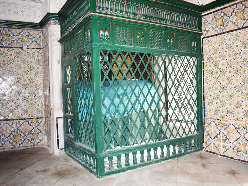 وفي الجهة الشمالية الشرقية يقوم المدفن الذي يحتوي إلى جانب ضريح سيدي عبيد قبر السلطان الحفصي مولاي الحسن المتوفى سنة 958هـ/1550م وهو مغطّى بسقف رائع مدرّج من الخشب المطلي يتركب زخرفه من عناصر هندسية وأخرى نباتية وأقواس تتكرّر في تتابع منتظم على ما هو معروف في المخزون الزخرفي والمعماري الاندلسي.