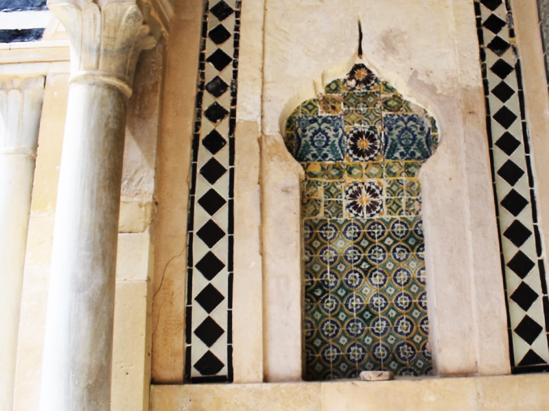 وتتكوّن ملحقات المعلم الأخرى في الطابقين الأرضي والأول من غرف ضيقة مخصصة للطلبة. أمّا الركن الجنوبي شرقي فيفضي إلى صحن ثان محاط بمجنّبات تعلوها تيجان بيزنطية و زيريّة وأعمدة مزخرفة بأختام وبكتابات كوفية تمّ جلبها فيما يبدو من موقع صبرة العاصمة الفاطمية .