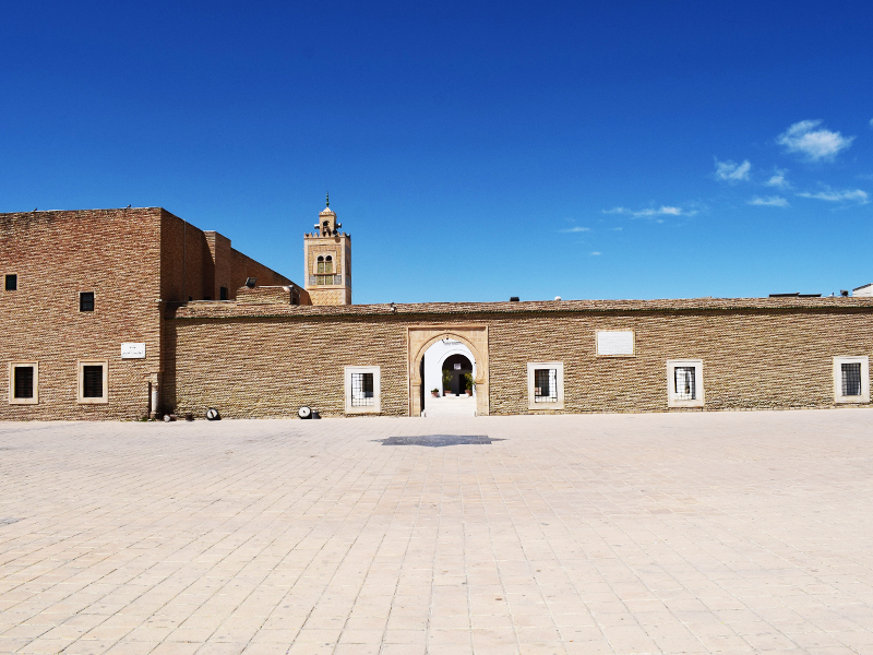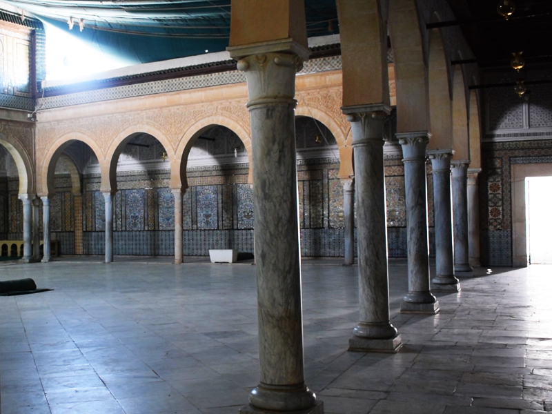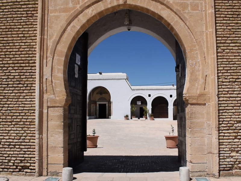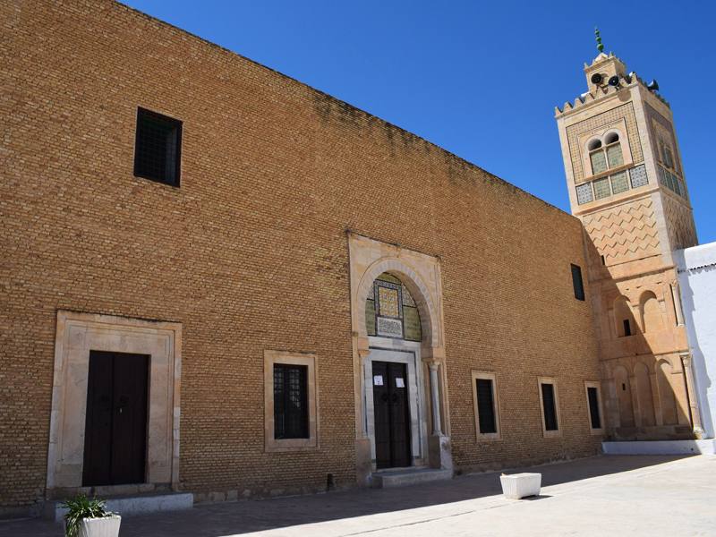 3-المدرسـة: وهي ملاصقة للمخزن وتتميّز ببيت صَلاتها المستطيلة والعميقة والتي تتألّف من بلاطتين يتصدرها المحراب الذي تعلوه قبّة ذات رقبة مضلّعة. وللمدرسة صحنان أحدهما محاط بالأروقة من الجهات الأربعة التي تتوزّع حولها غرف الطّلبة. وتنتصب عند الزّاوية الشّماليّة الشّرقية المئذنة ذات التأثيرات الأندلسية والمزخرفة بمربّعات القاشاني التي تعلوها عقود متجاوزة ومتوأمة وشرفات مسنّنة فريدة في القيروان والتي تذكّرنا بمئذنة جامع القصبة بتونس.