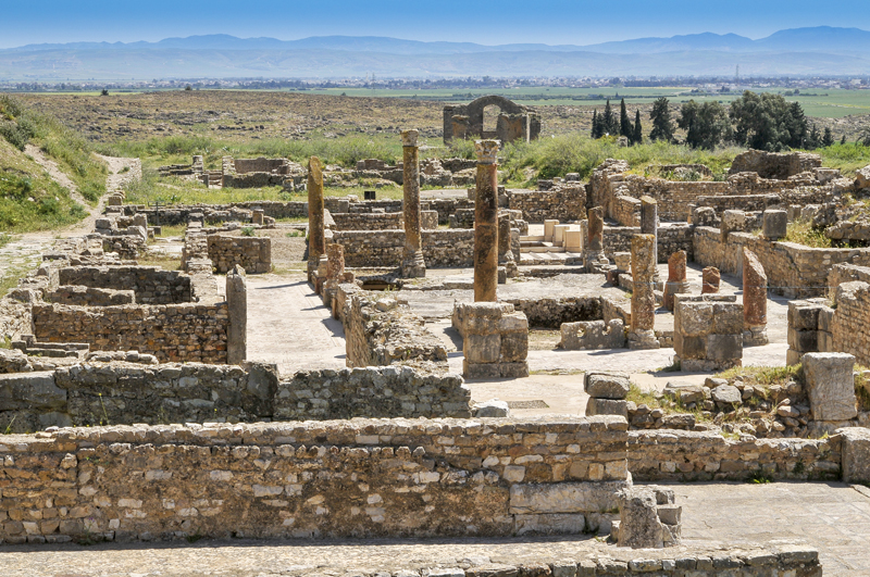 لئن كان تاريخ تأسيس بولاريجيا غير محدد بعد، فمن الأرجح أن يكون سابقا للقرن الخامس قبل الميلاد. وقد شهدت بولاريجيا، حسب ما ويبدو، نموًا سريعًا. وقد بدأت المدينة بعد سنة 46 ق. م.، تتخذ شيئًا فشيئًا طابعا رومانيا. ومما يدل على ذلك أن الديانة اليونانية الرومانية والأسماء الرومانية الجديدة التي يحملها سكان المدينة واستخدام اللغة اللاتينية بدأت في الانتشار في الحياة اليومية. وارتقت المدينة إلى مختلف المراتب البلدية وتزينت في الأثناء بحلية من المعالم الفخمة. وأصبحت المدينة تمتلك العناصر الأساسية التي تميز المدن الرومانية مثل: الساحة العمومية (الفورم) والبازيليكا المدنية والحمامات العمومية (الحمام الممّي، نسبة الى جوليا ممّيّا، والحمام الكبير الواقع جنوبا والحمام الواقع شمال غربي المسرح، إلى غير ذلك...) والمكتبة والسوق والمسرح والمدرّج ومعبد الكابيتوليوم (المكرس للآلهة يوبيتير وجونو ومينيرفا) ومعابد أبولو وإيزيس وساتورنوس ...