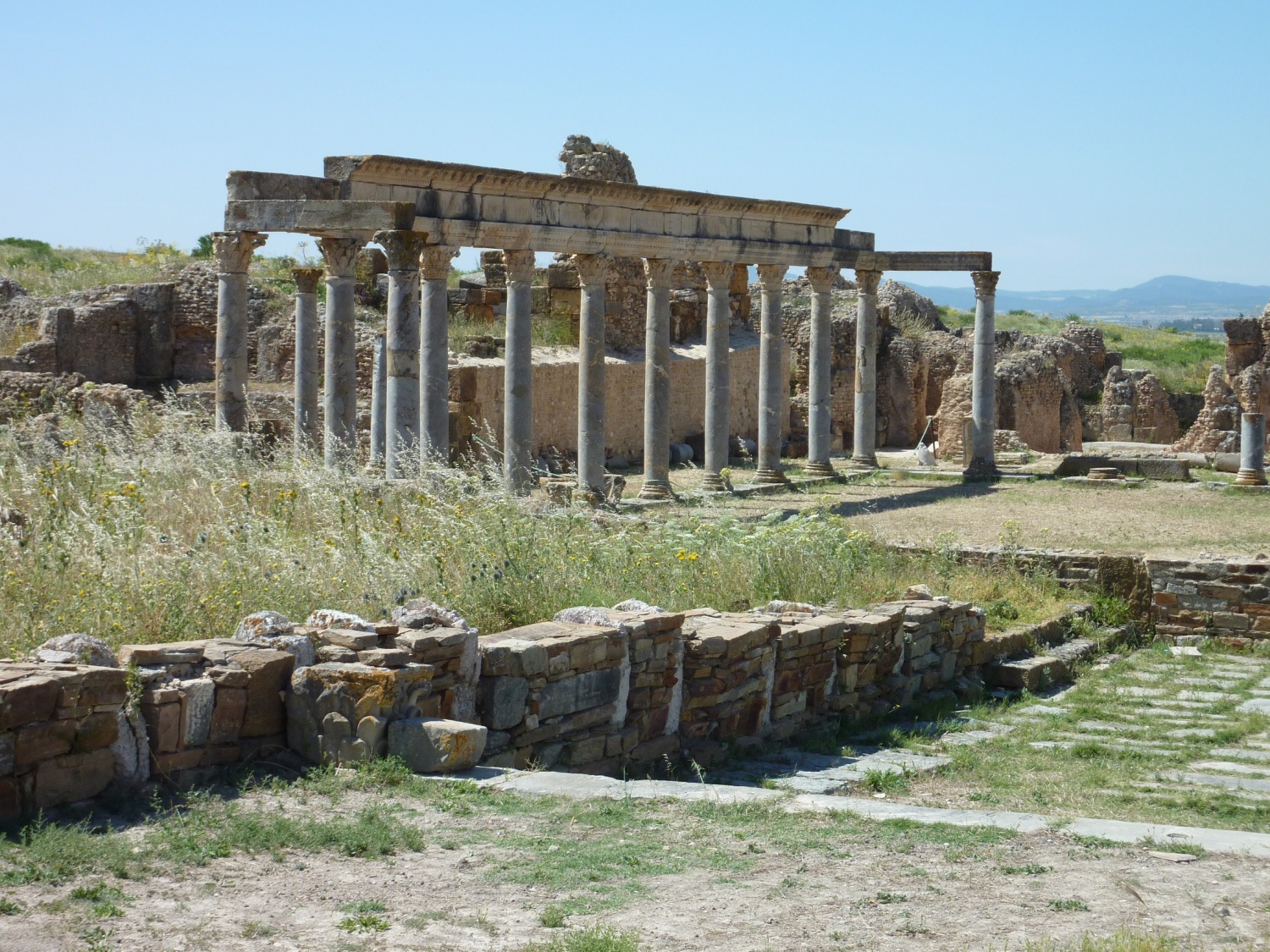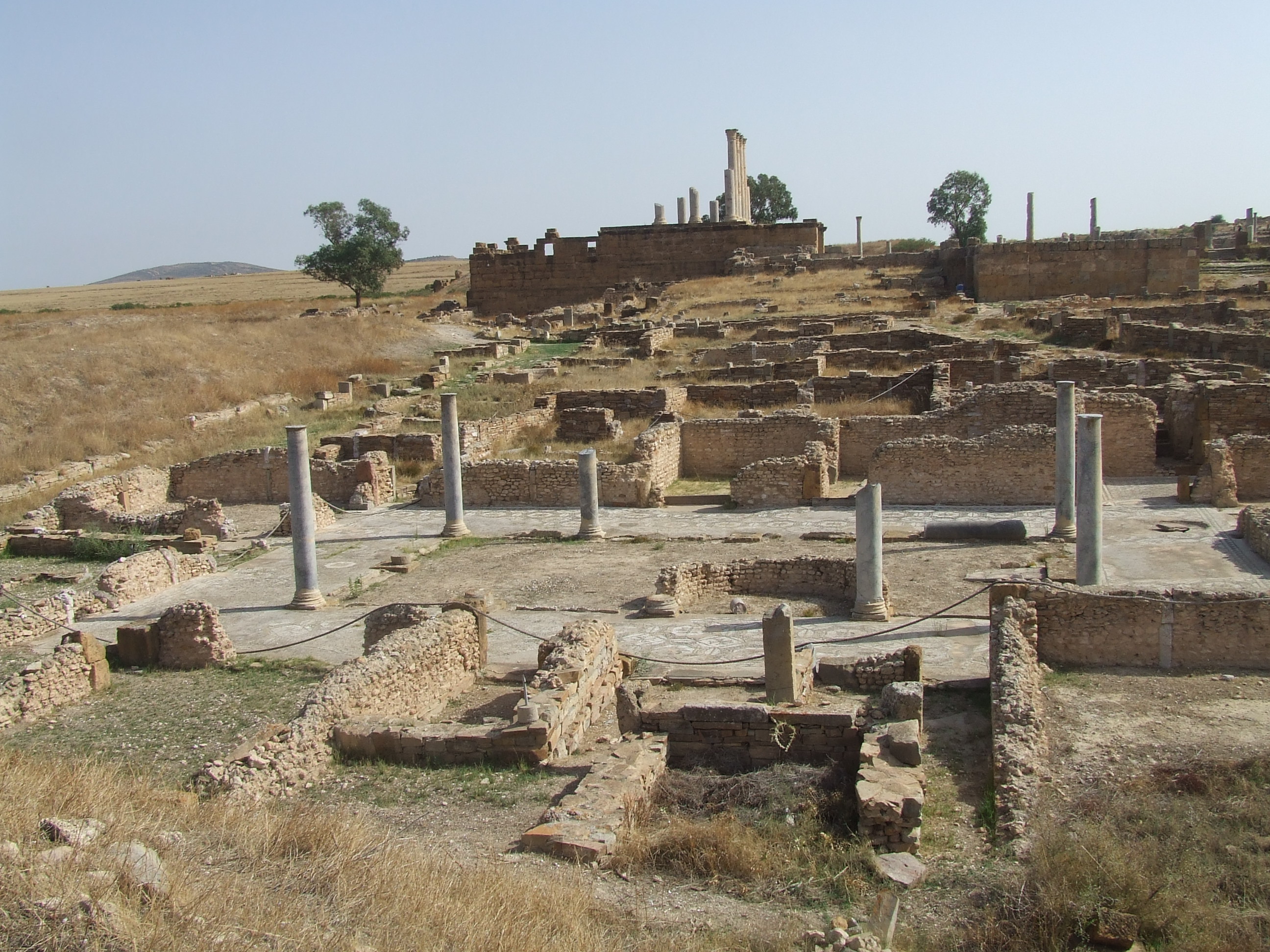 وبالمقابل، فإن معرفتنا بالمدينة الرومانية أفضل بكثير بفضل الحِلية المعمارية الثرية التي تحفل بها (حي الفورم ، والحمامات العمومية الشتوية والصيفية والميدان الرياضي والمنازل الفخمة التي تقترن ، في بعض الأحيان ، بأحياء حرفية وحوالي 16 معبدا ...). وقد رافقت عملية تطور العمران مختلف مراحل تاريخ المدينة الرومانية ولا سيّما ترقيتيها الإداريتين اللتين جدّتا في القرن الثاني (الى مرتبة المدينة أو 'مونيقيبيوم'، في عهد الإمبراطور هادريان والى درجة المستعمرة الشرفية في ظل عهدالإمبراطور كومودوس) والأنشطة المتعلقة بمشاريع إعادة التأهيل والترميم التي أُنجزت في القرن الرابع. وانطلاقا من القرن الخامس تضاءل عدد الوثائق النقائشية وتعرضت المعالم العمومية للهجر أو، في بعض الحالات ، حُوّلت إلى ورش حرفية ، ومن الأمثلة على ذلك معصرة الزيتون التي تم تركيزها في دهاليز مبنى الكابيتوليوم).