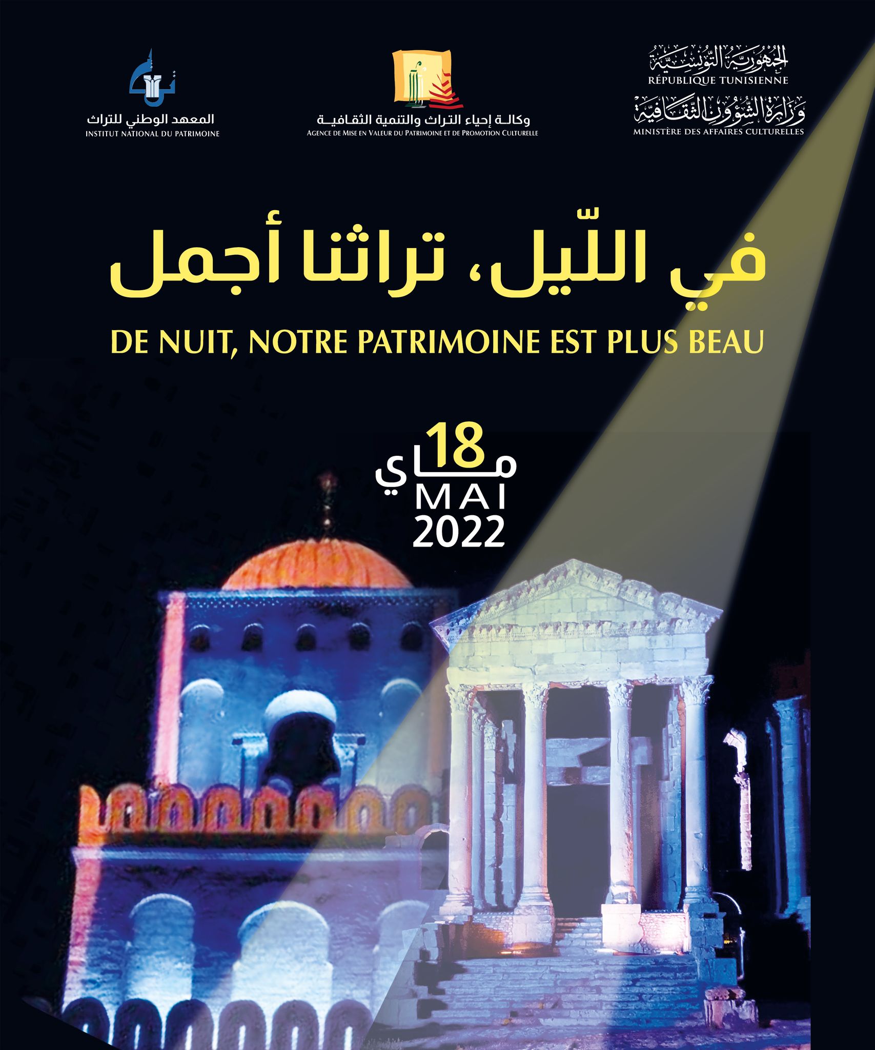 Timed with the closing ceremony of the 31st edition of the Heritage Month and on the occasion of the closure of the first national campaign to clean up monuments and archaeological sites, the Agency for the Development of Heritage and Cultural Promotion (AMVPPC) will illuminate a numver of archaeological sites, monuments and museums on the night of Wednesday, May 18, 2022.