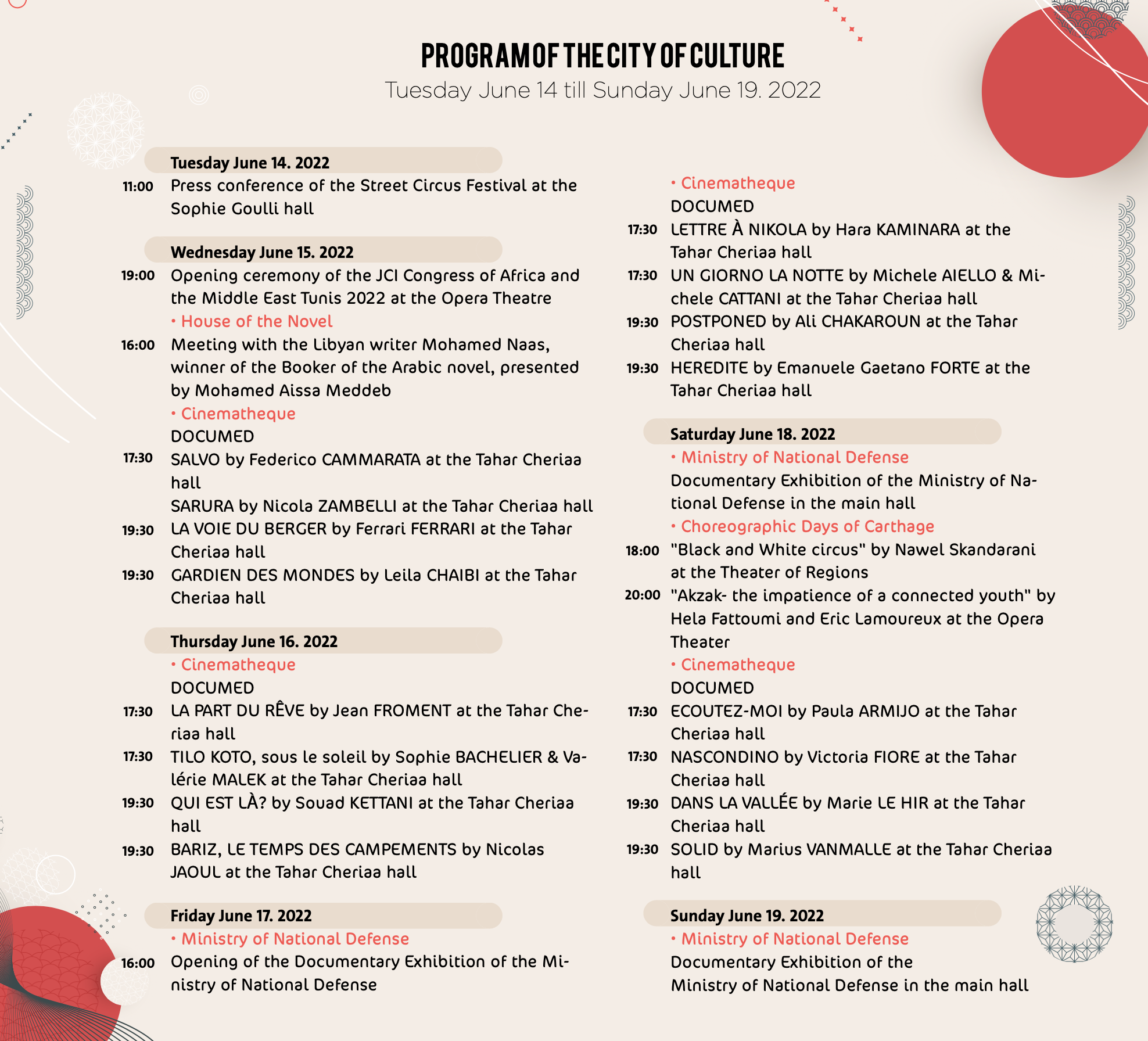 The weekly program of the City of Culture
