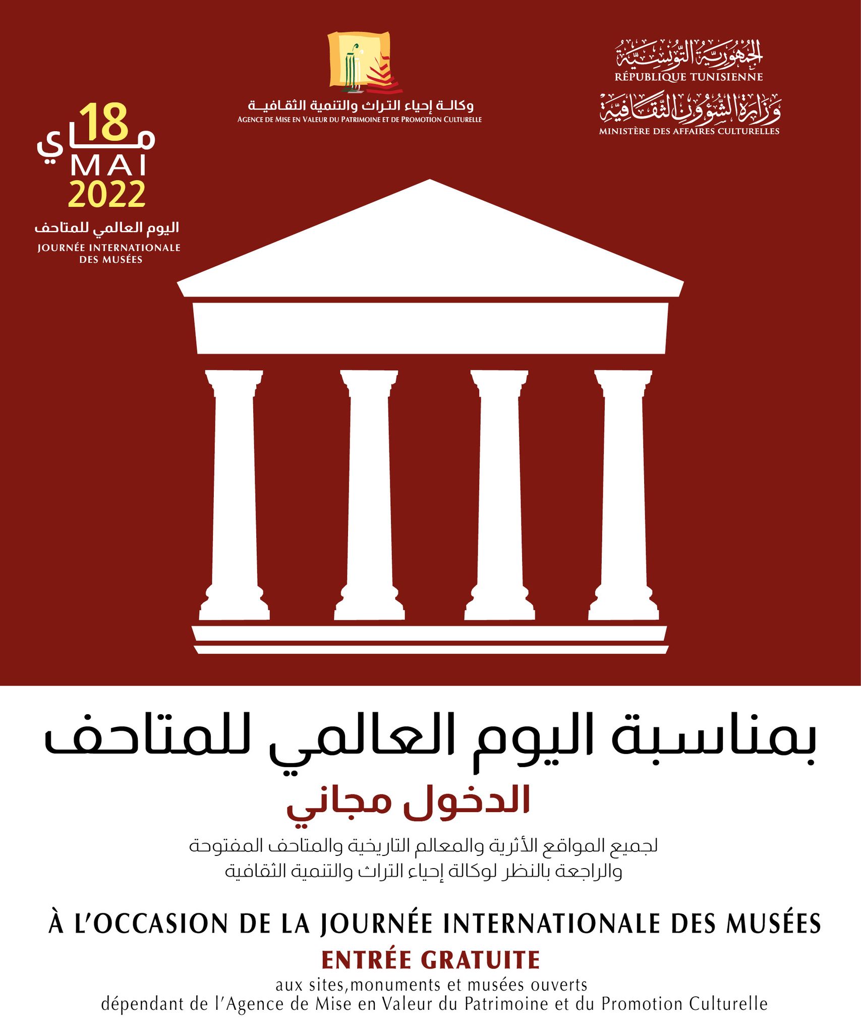 À l'occasion de la journée internationale des musées, l'Agence de Mise en Valeur du Patrimoine et de Promotion Culturelle (AMVPPC) vous informe que ce mercredi 18 Mai 2022, l'accès aux sites, monuments et musées ouverts et dépendant de l'Agence de mise en valeur du Patrimoine et de Promotion Culturelle sera gratuit.