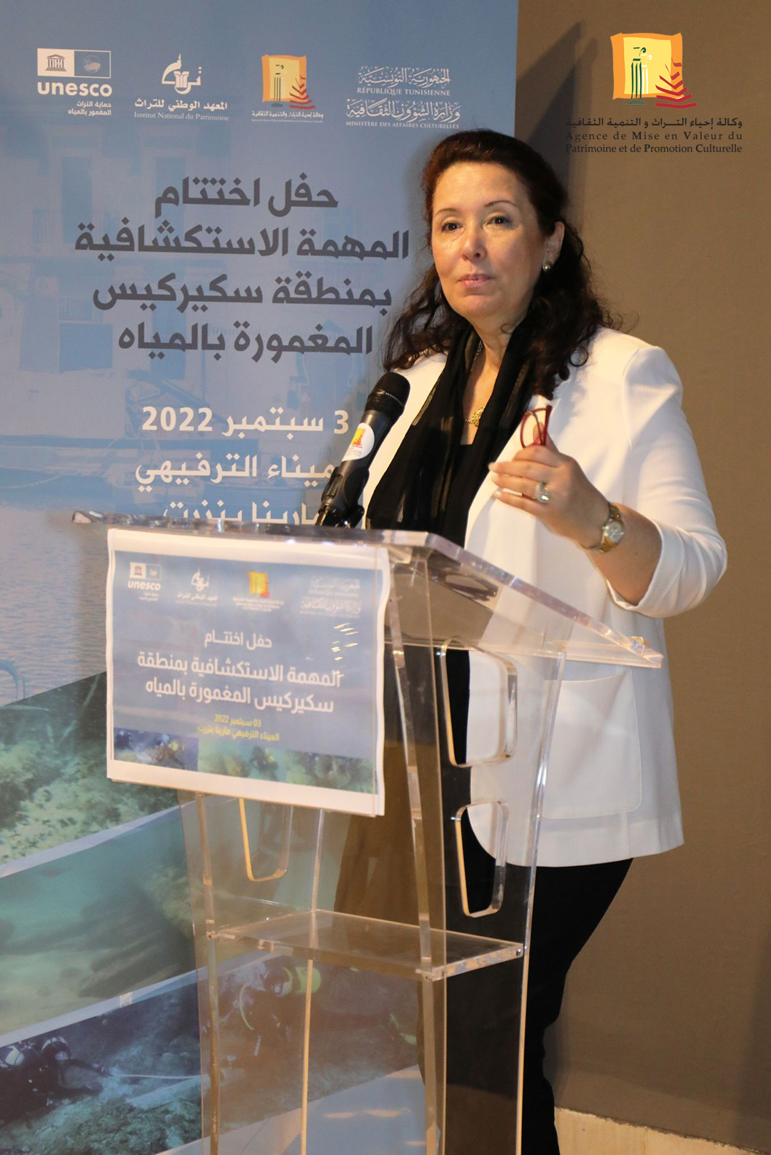 Dans son allocution présentée à la clôture de cette mission scientifique, Docteur Hayet Guettat Guermazi, Ministre des Affaires Culturelles, a annoncé la création d’un centre régional du patrimoine subaquatique en Tunisie, en collaboration avec l’Organisation Arabe pour l’Education, la Culture et les Sciences (Alecso). Elle a souligné que ce projet est considéré comme étant une reconnaissance du rôle de la Tunisie qui a été témoin des premières prospections scientifiques des épaves de bateaux à Mahdia. De plus, Madame la Ministre des Affaires Culturelles a appuyé le rôle de leader qu’acquiert la Tunisie au niveau régional et international dans ce domaine depuis son adhésion, comme premier pays arabe et africain, à la Convention 2001 de l’Unesco pour la protection du patrimoine culturel subaquatique.